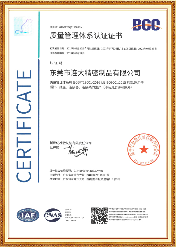 通 过 ISO9001,ISO14001,IATF16949,SA8000,ISO45001 认 证.
